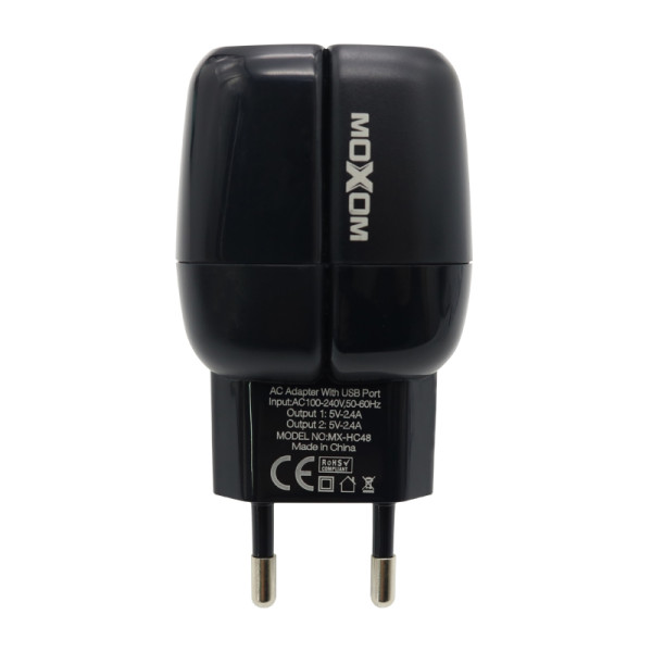 - Kucni punjac Moxom MX-HC48 2xUSB 2.4A type-C crni
