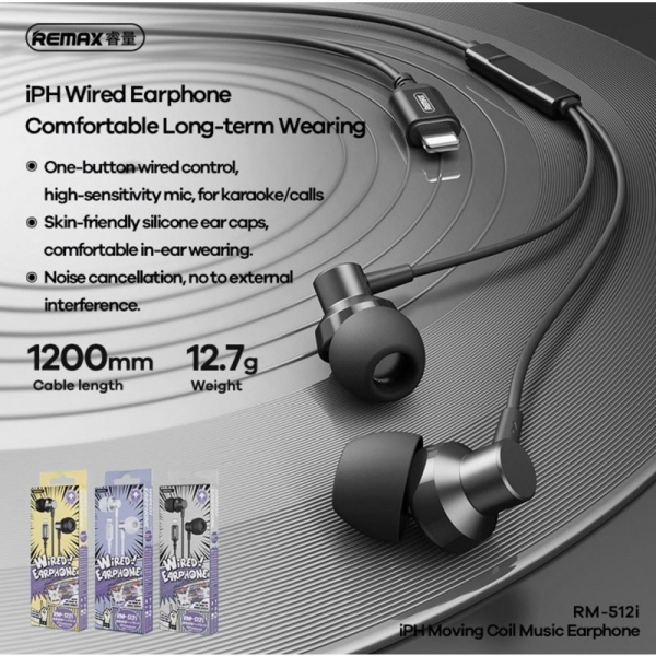 - Slusalice Remax RM-512i za iPhone Lightning sive